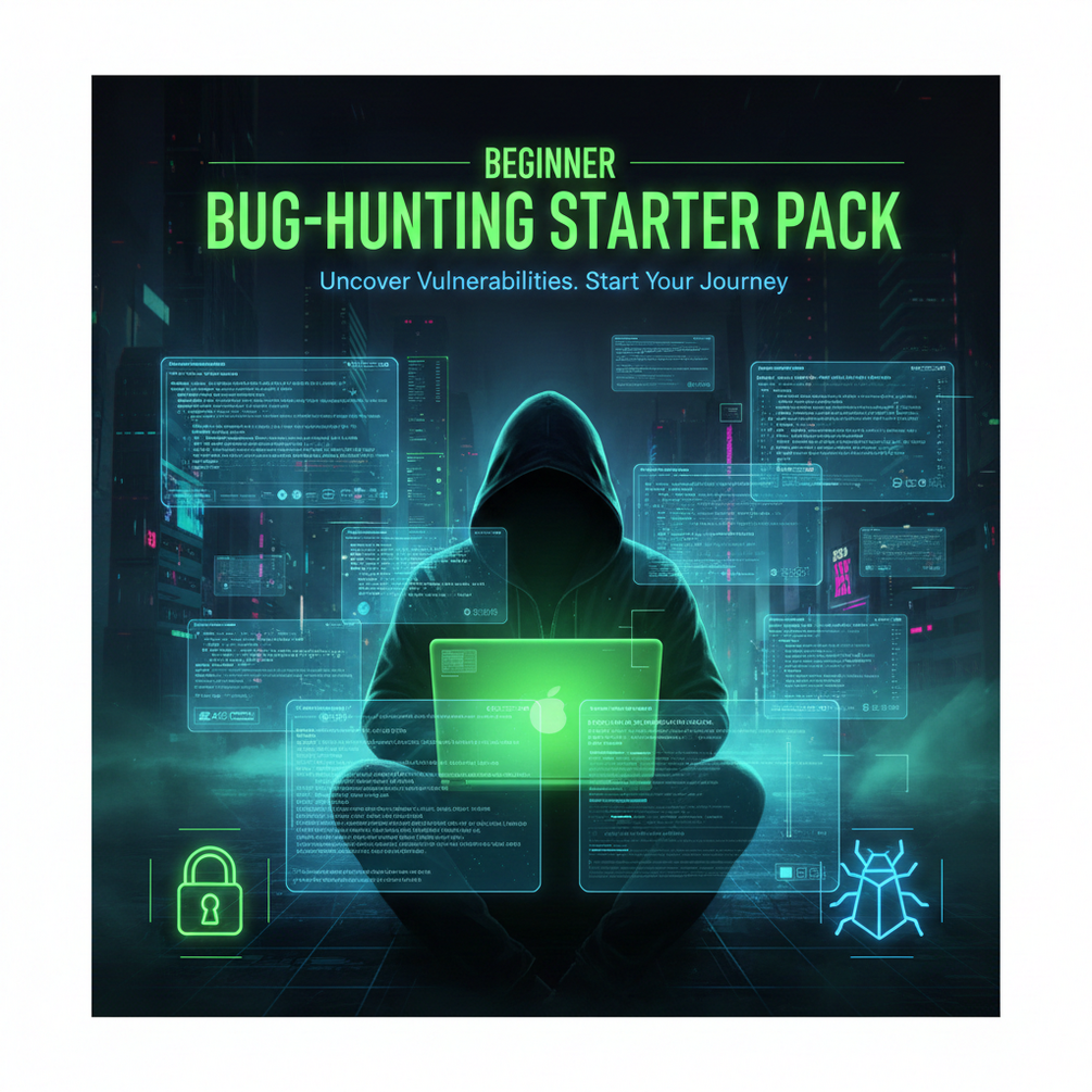 📝 Summary – Beginner Bug-Hunting Starter Pack The Beginner Bug-Hunting Starter Pack is a complete starting toolkit for anyone new to bug bounty and web security. It teaches you how hackers perform reconnaissance, what to look for on a target, and how to uncover hidden files, directories, and attack surfaces using proven methods. With a clear recon guide, 150+ ready-to-use commands, and practical discovery techniques, this bundle helps beginners avoid confusion, save time, and start finding real vulnerabilities faster — without advanced knowledge or expensive courses. 👉 Perfect for beginners who want a clear roadmap into real-world hacking.